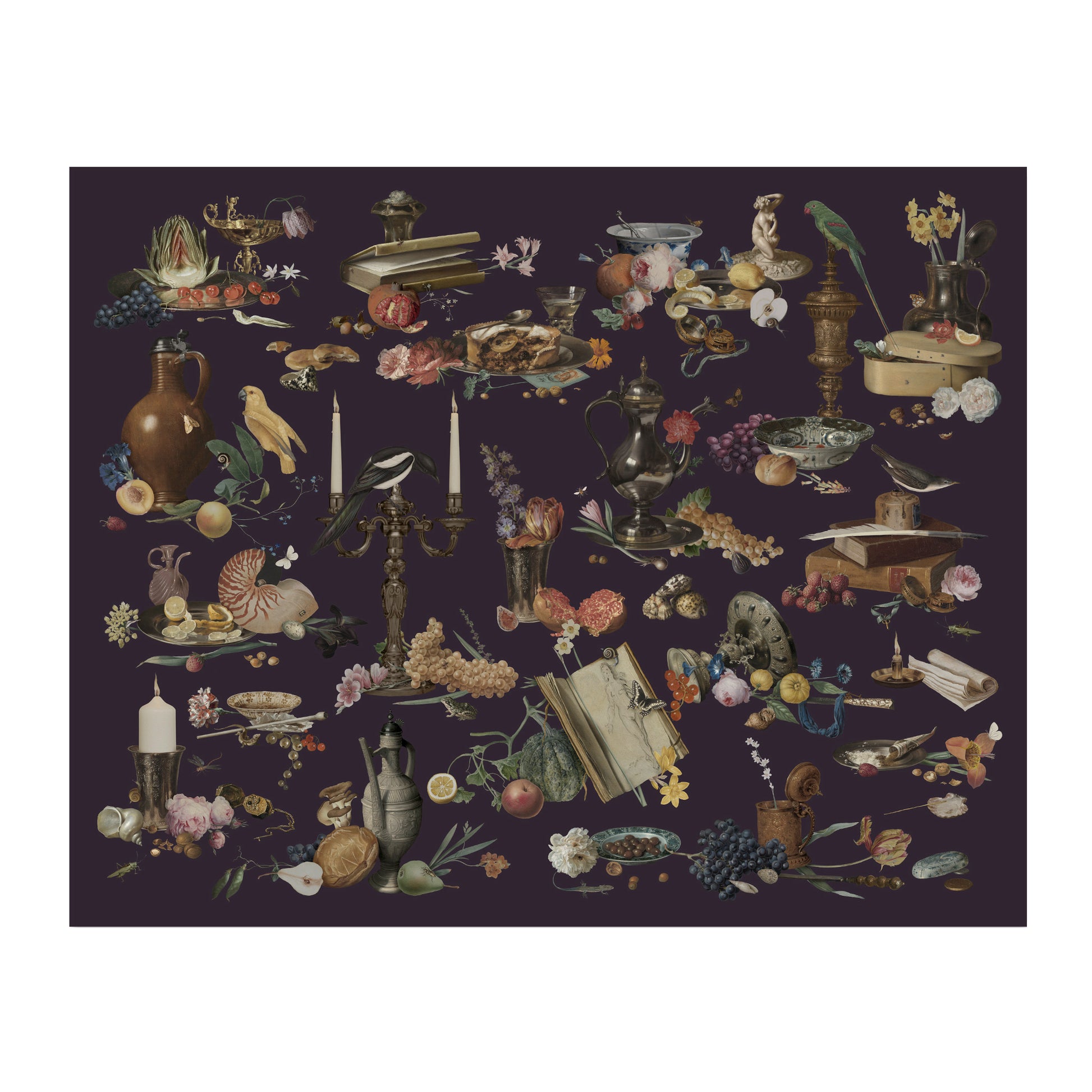 Inspired by, and composed of bits and pieces of Dutch still life and vanitas paintings from the 17th century.